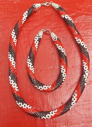 Жгут " Вишиванка" з чеського бісеру. комплект з браслету та кольє. Якісна фурнітура. В наявності. Довжина кольє - 45 см, товщина 1 см