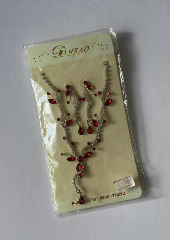 Классный набор украшения, яркий, изысканный Серьги и ожерелье Упаковка прозрачная повреждена( ни на что не влияет)