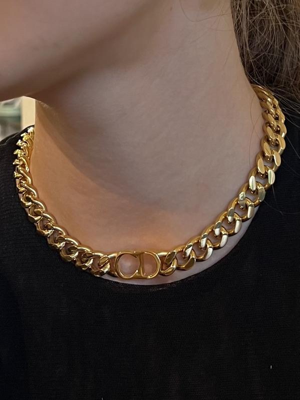 Подвеска диор в виде цепи с логотипом, позолота 18к