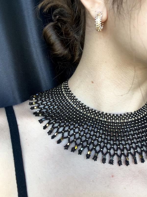 ⚜️Чорне золото⚜️ Виконана із чеського бісеру Preciosa. Регульований розмір ланцюжка Довжина 31 см Ширина 6,5 см Вага 59 грам Можливе виконання в інших кольорах за вашим бажанням
