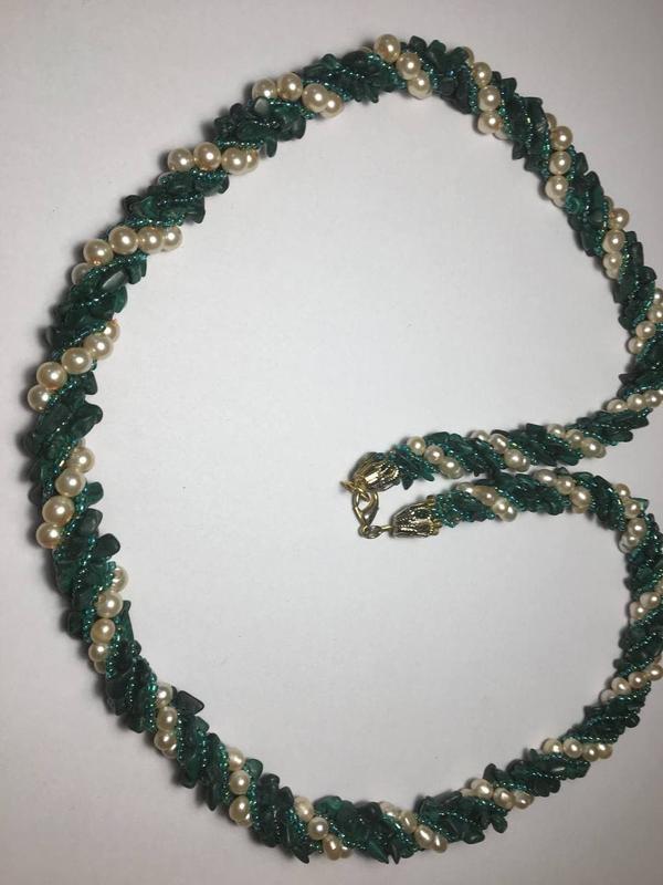 Материалы: натуральный малахит (осколы), имитация жемчужин (стекло), чешская фурнитура и бисер.Довжина 58 см. ожерелье из натуральных камней. Предлагаем Эксклюзивное украшение ручной работы - Отличное ожерелье из натурального камня - малахит с добавлением жемчуга. Так же возможно выполнение данного ожерелья в любом сочетании цветов по желанию заказчика Дополнительные характеристики: Камни / вставки: Жемчуг, натуральный камень - сердолик Материал: Бисер Материал: Намистины Материал: Металлическая фурнитура Материал: Стекло Товар изготавливается по заказу