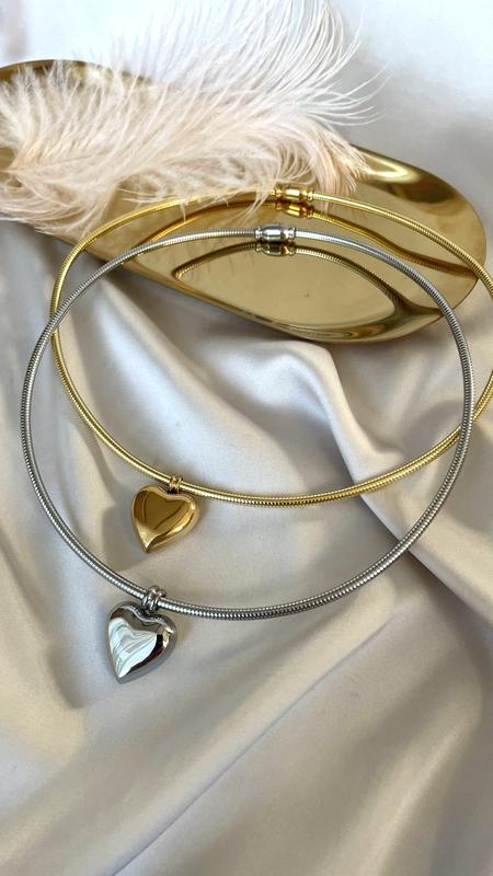 Стильне кольє з підвіскою серцем . Еластичне, але добре тримає форму. Застібка на магніті. Є в двох кольорах.