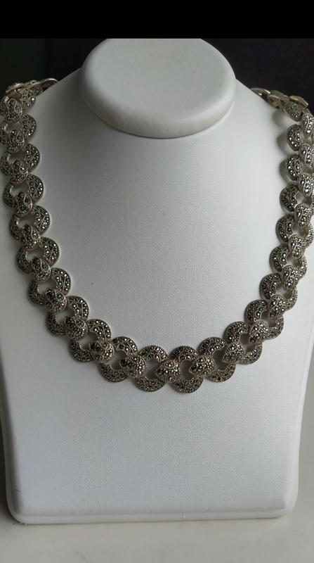 Срібне кольє з натуральними марказитами( крапельне срібло) 925 проби,вага виробу 87,30 грам, довжина 45 см