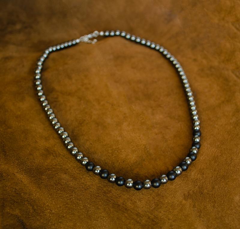 Мужской чокер ( бусы) из натуральных камней - гематит и шунгит