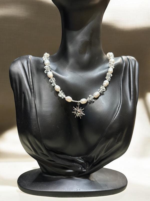 Ніжне кольє з натуральних перлин і крихти гірського кришталю Довжина 42-47 В наявності з золотою та срібною фурнітурою