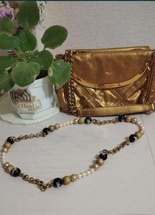 Женское колье Dolce and Gabbana Термопозолоченная сталь, культивированный пресноводный жемчуг, черная смола, сферы с алмазным эффектом. Длина - 80 см. Без видимых следов носки.