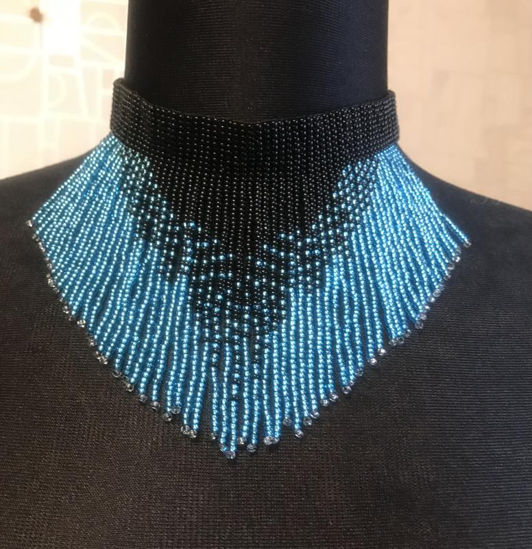 Кол‘є-Чокер з тороками, виконан з чешського бісеру двох кольорів, в ефектний принт, фурнітура в сріблястому кольорі, вигляд і розміри на фото. відповім на всі питання, відправлю зручною вам поштою після оплати на картку Приват чи Моно,безпечна оплата і накладний платіж з передплатою тільки Нова пошта чи Містекспрес,читайте розділ "Про мене»