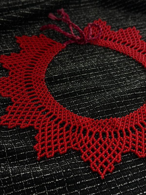 Роскошное украшение на шею ручной работы. Выглядит невероятно. Идеально как для себя так и на подарок. Можно выполнить в любом цвете (термин изготовления 2-3дни)! 700 грн. Высота 5.3 в более широкой части и 3.2 в более узкой Длина 34 см Длина благодаря завязкам регулируется, Длина завязок 2*9.5 см