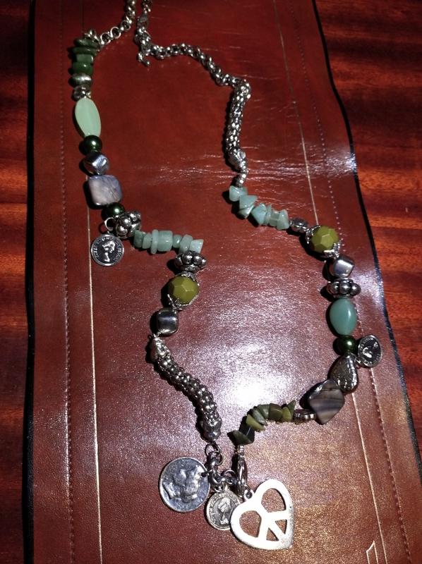Колье. Натуральный камень, перламутр, бусины. Длина 95см.