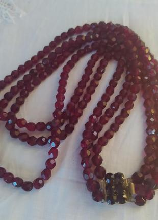 После платья нет!! Очень красивые 3 рядные гранатовые бусинки. Гранені намистини. 50-60-70 гг. Чехословакія. Гранатовый хрусталь, гранатовое стекло Длина 57 см сама более длинная нить, 49 см самая короткая, середина 53 см. Жидкая застежка