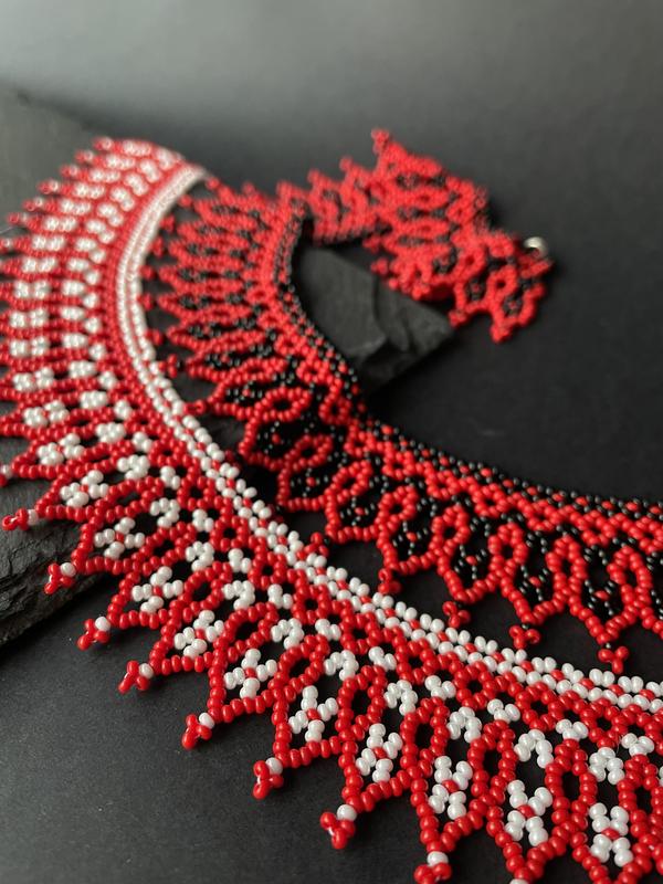 Традиційна прикраса Ширина- 3,5см. • Довжина- 36см. • Кліплення - ланцюжок-подовжувач. 750 грн