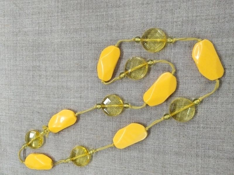 Бусы желтого цвета, яркие, интересные, прозрачные бусины очень красиво переливаются на свету