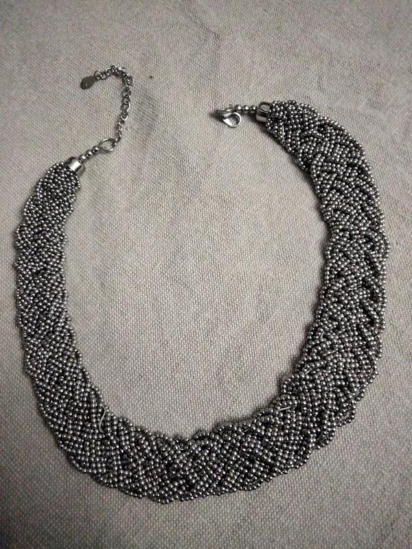 Колье,Англия. Очень красивое, изысканное. темно-серебристый бисер, плетево