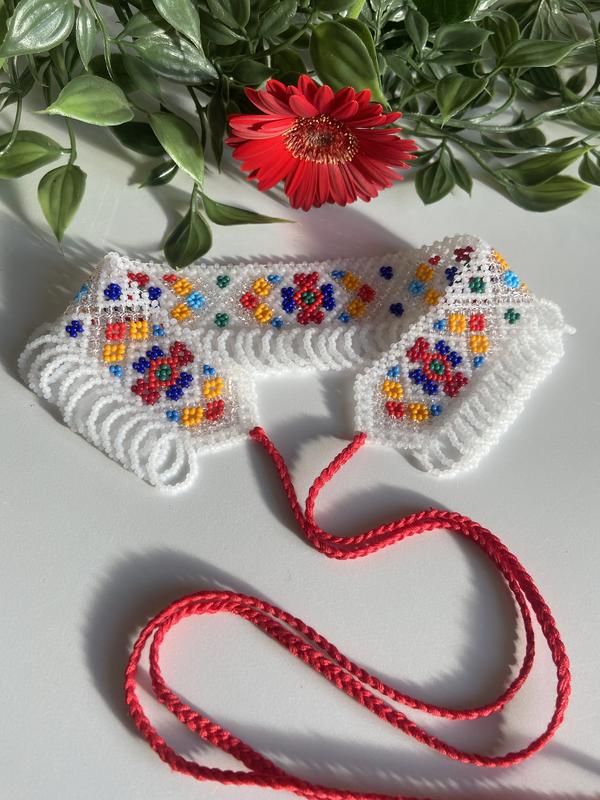 Гердан стрічковий . Прикраса на шию з бісеру. Виготовлено із якісного чеського бісеру на міцній нитці. Довжина бісерного полотна 30 см + 40 см завʼязки з нитки. Мішечок до зберігання безкоштовно
