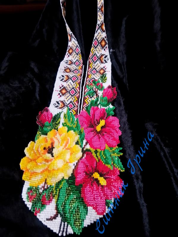 Колоритний Гердан "мальви на вишиванці". Довжина 40 см + шийний поясок по колу 38 см. Ширина 13 см. Чеський бісер 1 сорту. Доповнення до вашого іміджу, який багато хто оцінить гідно