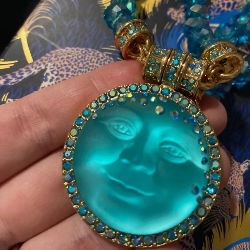 kirks folly вінтажне кольє "Moonface" з магнітного скла та з кристалами aura borelias. дуже загадкове і таємниче, ніби з казки, світло всередині матового, ніби притрушеного льодянистим інеєм чарівний ліхтарик в сяянні морозного повного місяця .