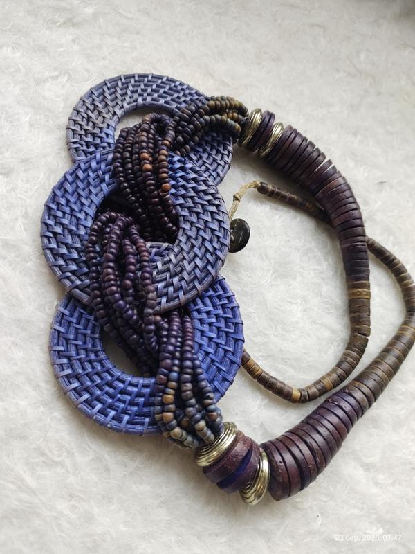 рафія і дерев'яні намистини, виглядає фантастично,хоч і є сліди часу