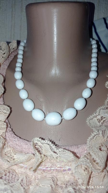 ніжне біле пластикове намисто робить ваш образ ніжним і жіночним.