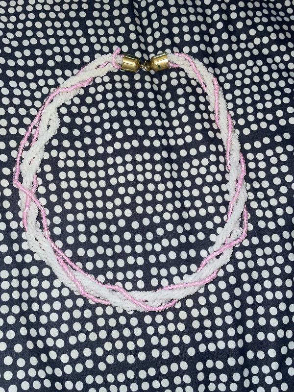 Намисто Torsade 1940-х/50-х років, поворотне намисто з багатониткового скла, рожевого та білого бісеру, регульоване.