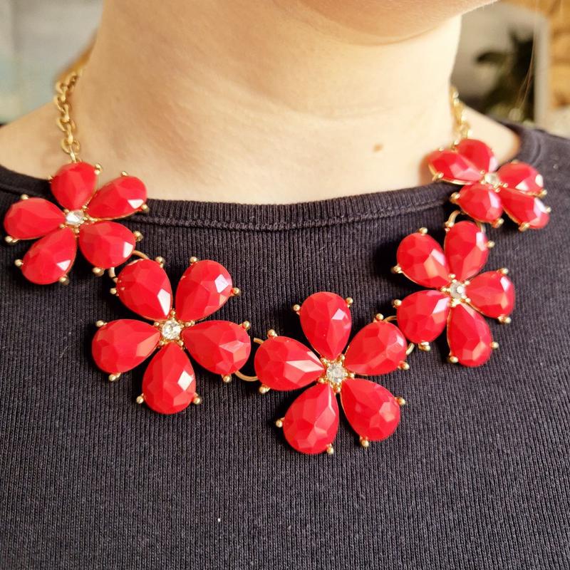 Кольє, червоні квітки, etc
