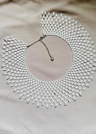 Ніжна позоро-біла силянка з чеського бісеру та гранених намистин Ширина 6см Довжина 39+10см