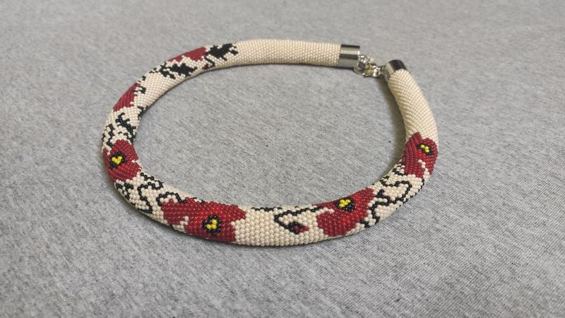 Виготовлений з чеського бісеру, довжиною 55 см. Основою слугує армована нитка для бісеру, що забезпечує міцність виробу. Виріб вдало доповнить будь-який ваш образ.