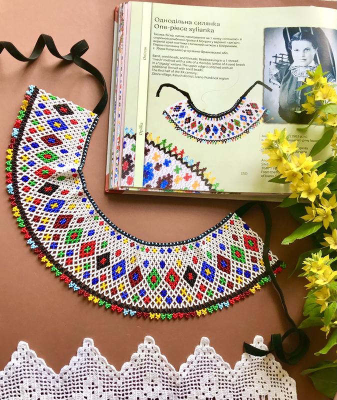 Силянка з бісеру, біла, барвиста, широка, handmade