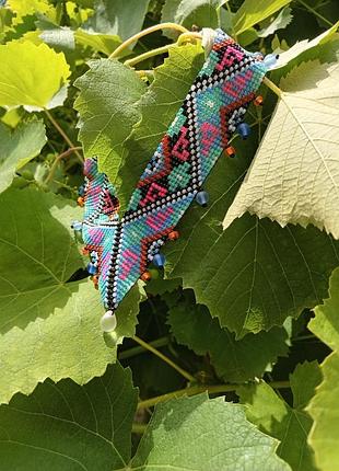 Чешський бісер 1 сорту чотирьох видів. Матовий,алебастр,звичайний ( чорний) та шикарнющі матові намистини а посеред ще і капля матова. Довжина 23см ширина 2.5см. Є ланцюжок- подовжувач . Нитка tytan lantan 100. Як описати, ...ну,шо красіво то красіво. Подарунковий мішечок Безкоштовно