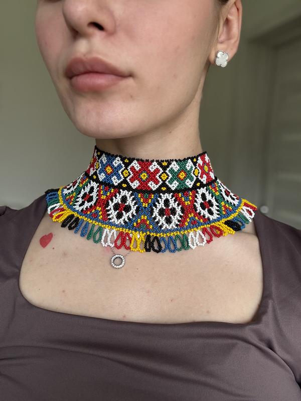 • виготовлена з чеського бісеру • зав’язки з бавовни • ширина 8,5 см, довжина 33 см (регулюється)