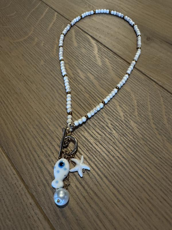 Красиве кольє з світлого бісеру з рибкою