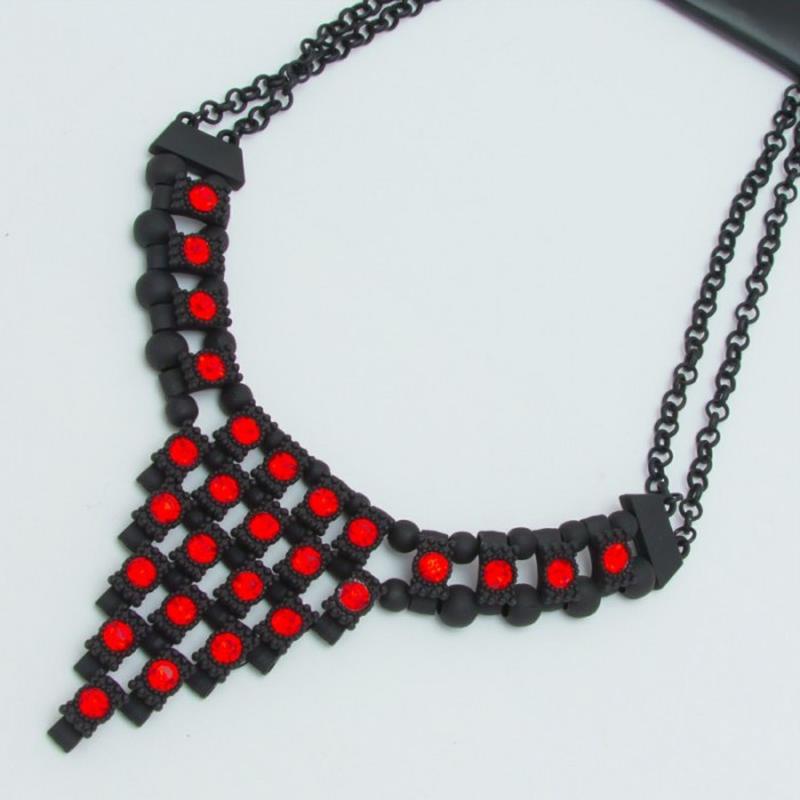 Подвеска №404 черный матовый металл со стразами красного цвета.