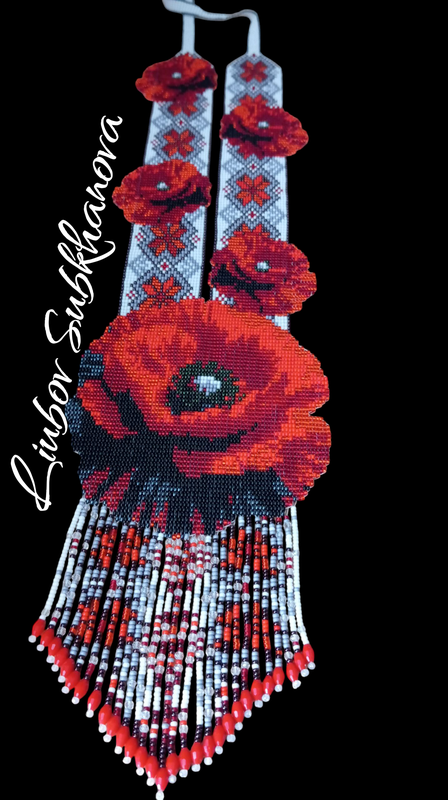 Гердан изготовлен из чешского бисера 1 сорта и бисер серии люкс.Маки с орнаментом который добавляет легкости