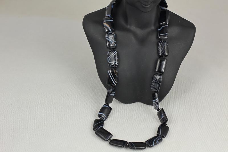 Буси no name агат чорний прямокутник 53 см сріблсяті