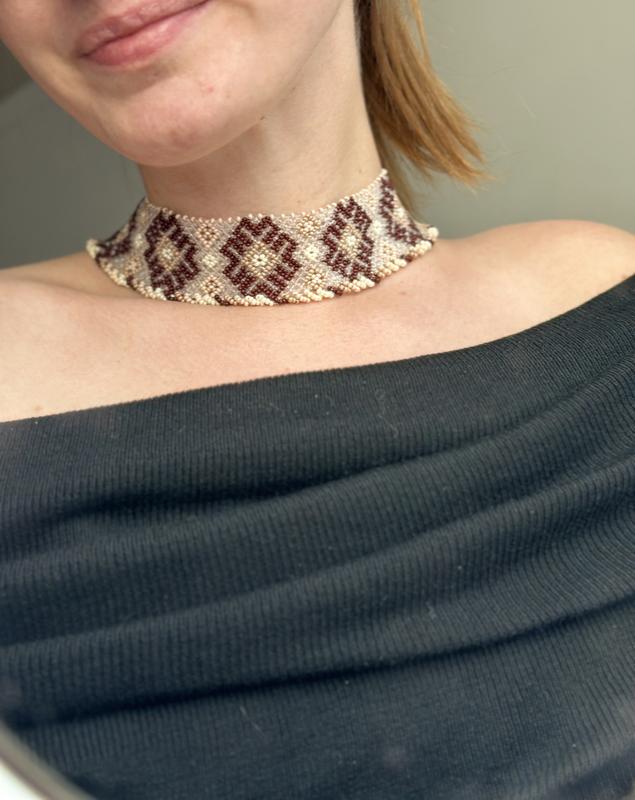 Чокер в українському стилі з бісеру. Ручна робота. Дуже гарно блистить на сонці. В наявності.