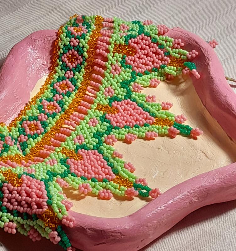 Силка украинская по собственному дизайну, в едином экземпляре, вдохновленная любимой персонажкой Сакурой🌸 Чешский бисер, укрепленная нить и завязки для регулировки размера, 30см
