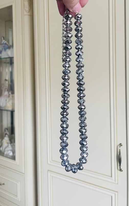 Винтажные бусы ожерелье из крупных граненых стеклянных бусин чешское стекло!!! Цвет темно-серый с серебристым блеском!! В реальности намного красивее чем на фото!! Длина - 48 см ( 55 см с удлинительной цепочкой)