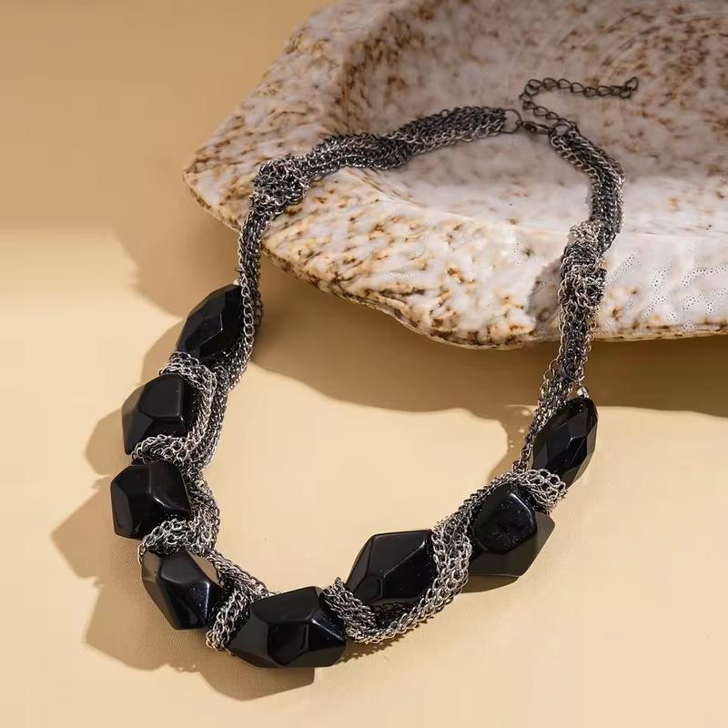 Кольє «black chains» з великими чорними каменями у рок-глем стилі