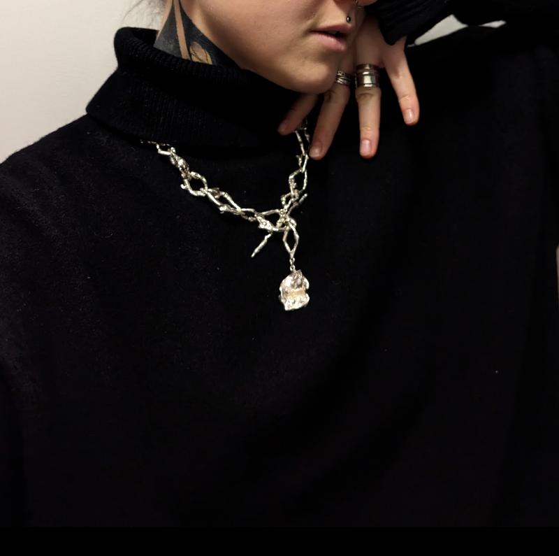 Дизайнерське срібне кольє з підвіскою дизайнерки claudia liepik