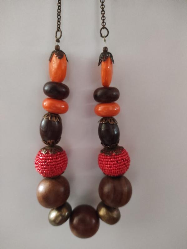 Кольє, намисто, намисто з великими намистинами теракотових відтінків Довжина загальна 57 см довжина бус 35 см