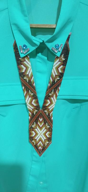 Гердан ручної роботи. Довжина 32 см плюс зав'язки для регулювання довжини, загальна ширина 6 см. Підходить чоловікам та жінкам. зав'язки можна поміняти на застібки
