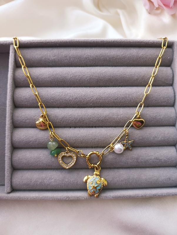 матеріал - нержавіюча сталь. в золотому кольорі ✨ із підвісками з черепахою, сердечком, зірками .