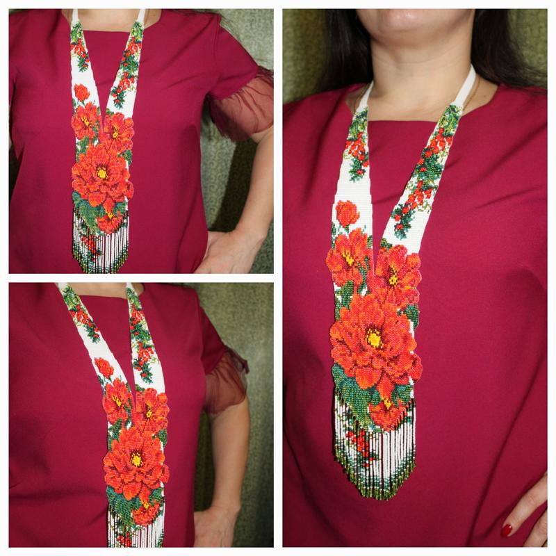 Гердан "Півонія" 💖💖💖 За схемою Ольги Сенюк, в наявності. Довжина шийного пояска 31 см. Довжина виробу до низок 54 см + 7.5 см низки. Вага 109 грм. Юлія *************
