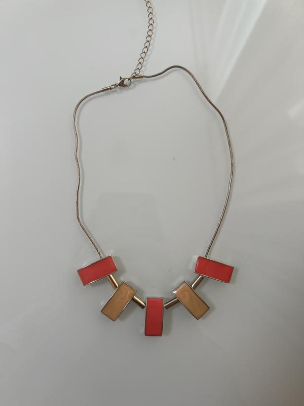 Код: 1440 Стильне жіноче кольє Ефектне кольє у сучасному геометричному стилі — ідеальний акцент для базових та святкових образів. Поєднання червоних і бежевих декоративних елементів додає яскравості та елегантності. Лаконічний дизайн гарно підкреслює шию та легко комбінується з різним одягом. Легка вага — комфортне у носінні Регульована довжина ланцюжка Актуальний дизайн у теплих відтінках Гарний стан Довжина регулюється застібкою. Ціна: 180 грн