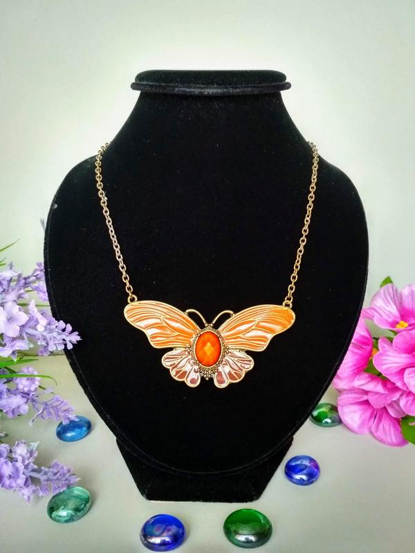 Оригинальное колье с бабочкой. Украшение имеет застежку карабин и цепочку для регулировки ширины. Длина: 47,5 см.