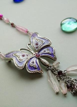 Ніжне намисто у вигляді метелика. Прикраса має застібку карабін і ланцюжок для регулювання ширини. Довжина: 50 см