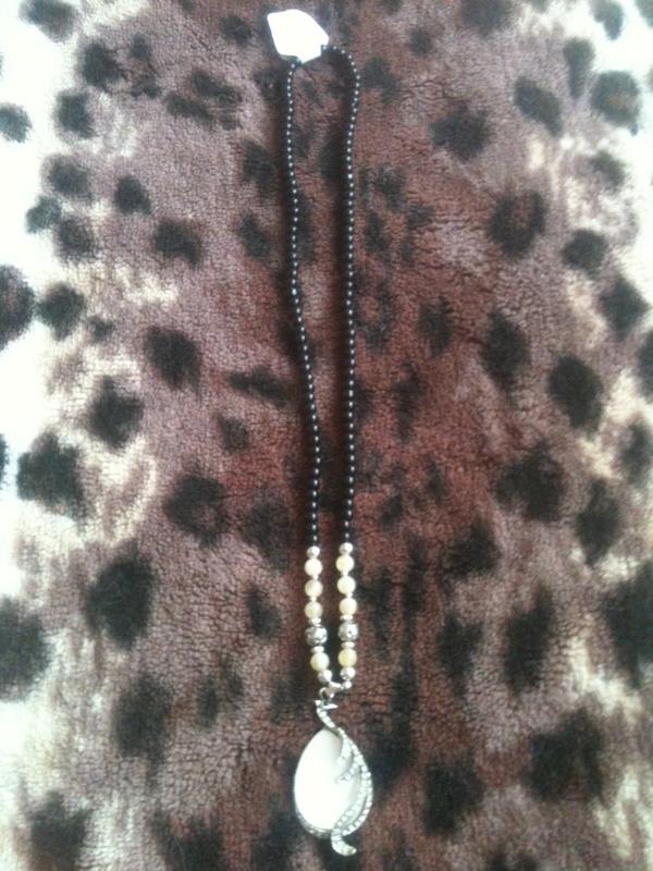 намисто з кулоном (камінь опал) прикрашено дрібними кристалами.
