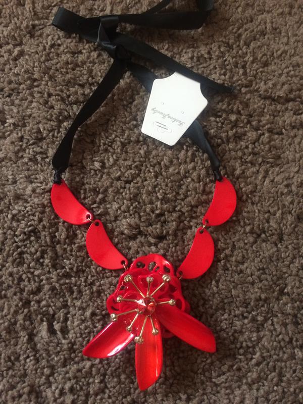 Необычное колье с красивым цветком, на завязках ( ленточка )