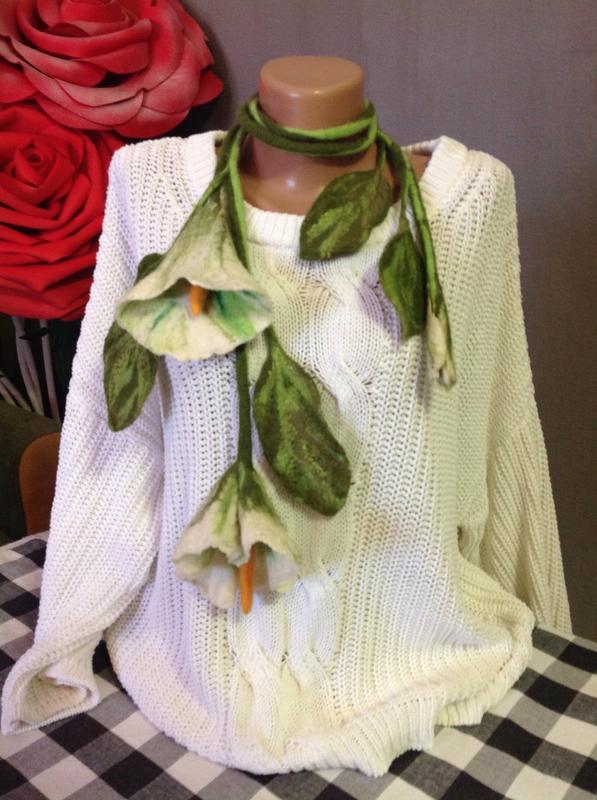 Валяне кольє « Лілія» . Виготовлено в ручну з 100%вовни та волокон шовку та віскози. Виготовляю різноманітні квіти у будь якому кольорі