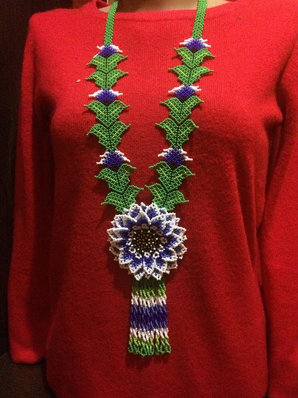 Оздоба виготовлена з якісного чеського бісеру та міцної нитки. Довжина виробу 50-52см. Діаметр квітки 8см. На замовлення 5 днів.