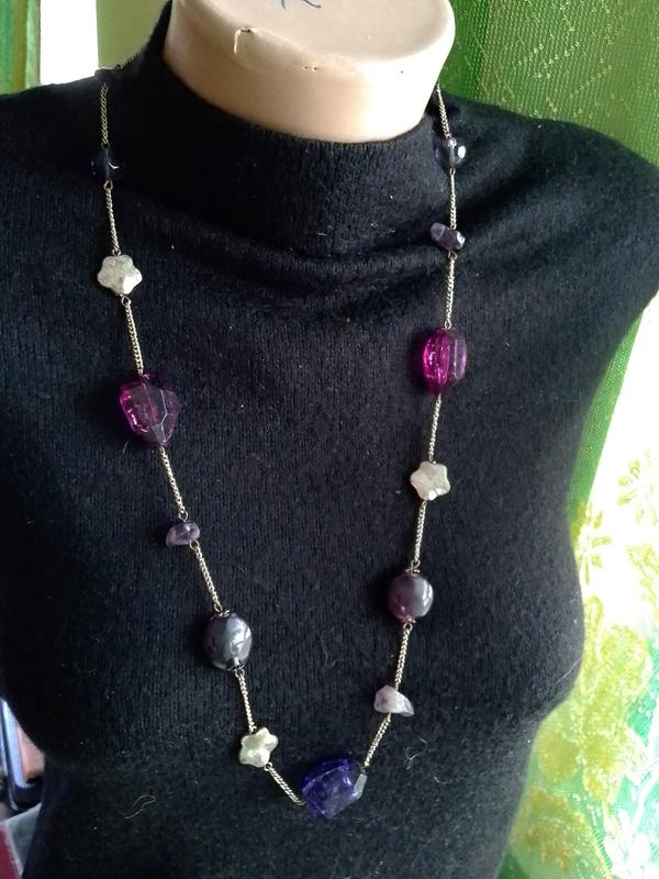 Намисто ручної роботи на ланцюжку. Намистини з натурального каменю, з акрилу, зі скла.